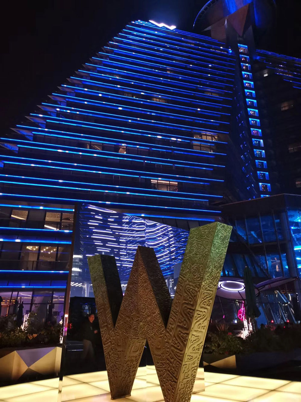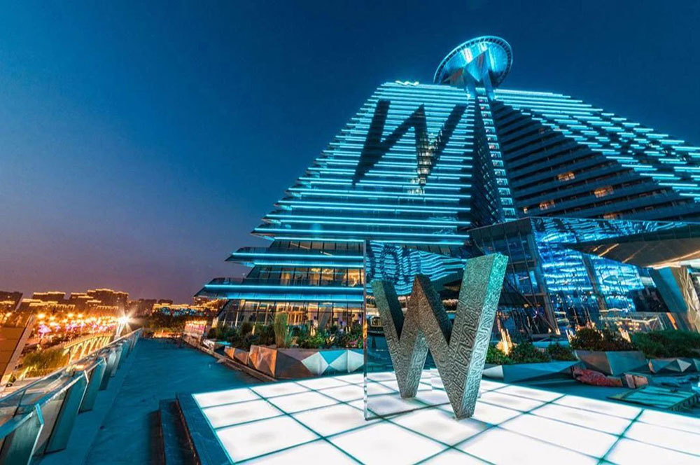 W hotel xi 'an, the largest W hotel in Asia, opened on August 20, 2018. Located in the qujiang new district of xi 'an, the hotel was designed by ABConcept Hong Kong, with a total construction area of about 80,000 square meters. The entire hotel looks like a "W" from a distance, like a diamond inlaid on the red clouds and blue waves, dazzling.