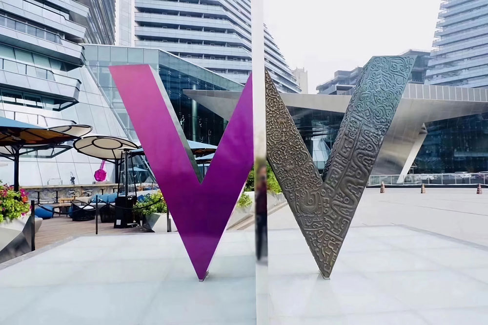 By pure copper archaize art + unreal color stainless steel production of "W" art style word is young and ancient encounter, fashion and ancient rhyme blend, the time of color, originality.